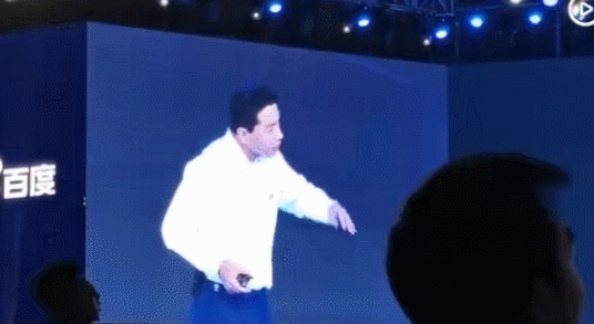 不过,今年火爆的开发者大会现场,发生了尴尬的一幕。百度公司创始人李彦宏上台,在介绍完小度“双全工无唤醒功能”后,正在解读百度自动泊车时,一位佩戴了证件的不明人士走到台上,来到李彦宏身边,将一瓶矿泉水直直地从李彦宏头顶倒下。